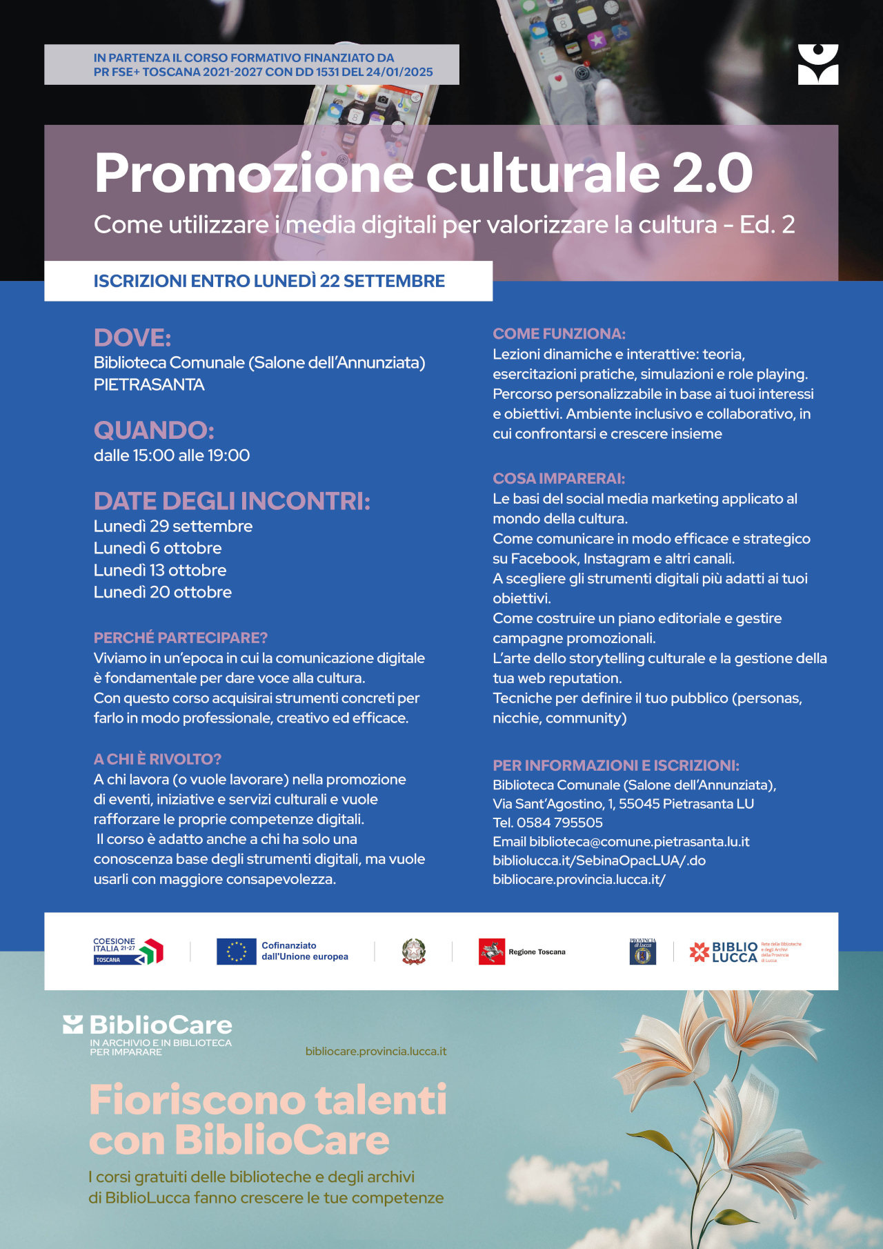A chi lavora (o vuole lavorare) nella promozione di eventi, iniziative e servizi culturali e vuole rafforzare le proprie competenze digitali.